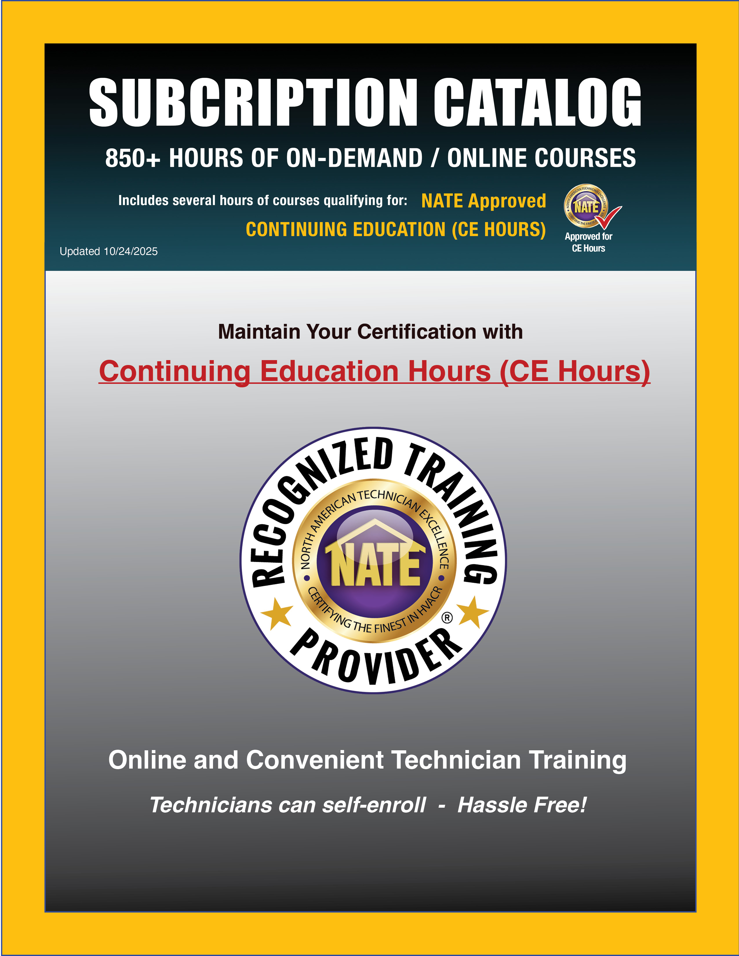 Access our full Subscription Catalog with over 850 hours of HVAC/R courses and NATE-Approved CEUs.